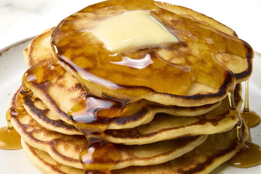ریختن عسل یا شربت افرا روی پنکیکها یک گزینه کلاسیک و خوشمزه است؛ این کار به پنکیکها طعمی شیرین و خوشمزه میدهد.