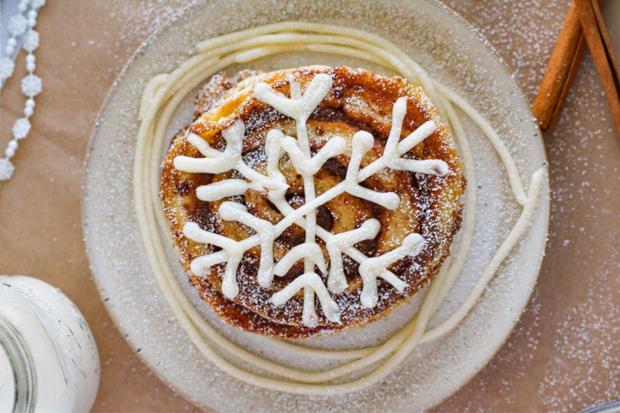 - پاشیدن پودر قند روی پنکیکها میتواند ظاهری زیبا و شیک به آنها ببخشد. این کار به ویژه برای مهمانیها و مناسبتهای خاص عالی است و حتی میتوانید برای این منظور از شابلون آشپزی کمک بگیرید.
